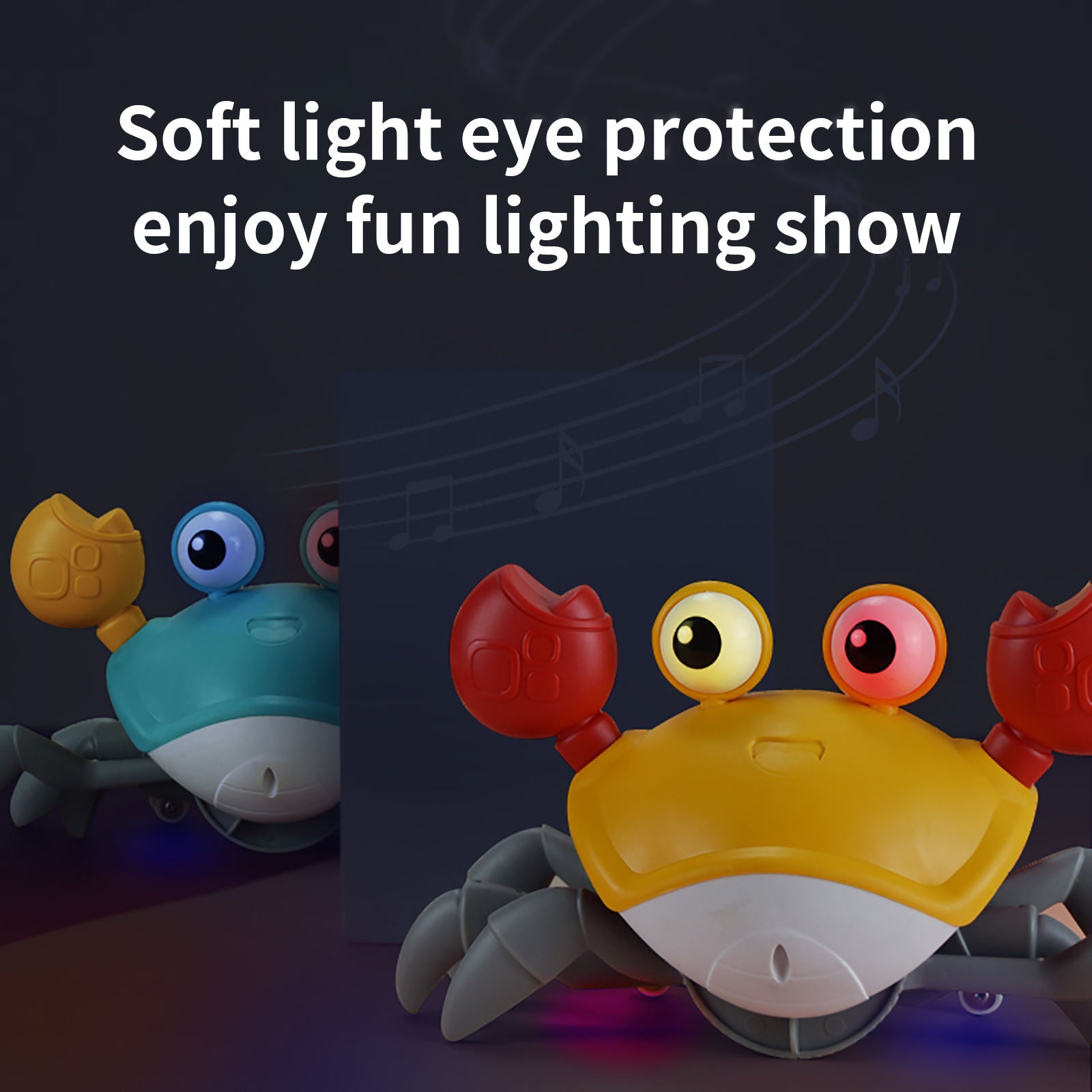 Sensing Crawling Crab: This crab toy is equipped with an electric crawling feature that enables it to move sideways, imitating the natural movement of a real crab. Activated by cheerful songs, the walking crab baby toy crawls joyfully; when it encounters obstacles, it autonomously changes direction, captivating babies who enjoy chasing after it. Moreover, it encourages infants to sit up and engage in extended play sessions, fostering exploration and development.