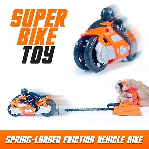 This pull-back motorcycle toy with a launcher provides an exciting speed challenge, delivering thrilling action with every launch. Designed with a friction-powered mechanism, this racing bike play set allows for effortless movement without the need for batteries, ensuring continuous fun. The two-wheel design enables smooth motion across different surfaces, making it suitable for both indoor and outdoor play. Crafted for durability, the structure withstands repeated use while maintaining performance. The interactive launcher adds an extra layer of excitement, enabling high-speed action with a simple pull-back motion. The compact size ensures easy handling, allowing for convenient portability and storage. Featuring a dynamic design, this play set encourages interaction, keeping engagement levels high through every race. The sturdy build ensures resilience against impacts, making it a reliable option for extended play. With an intuitive mechanism,